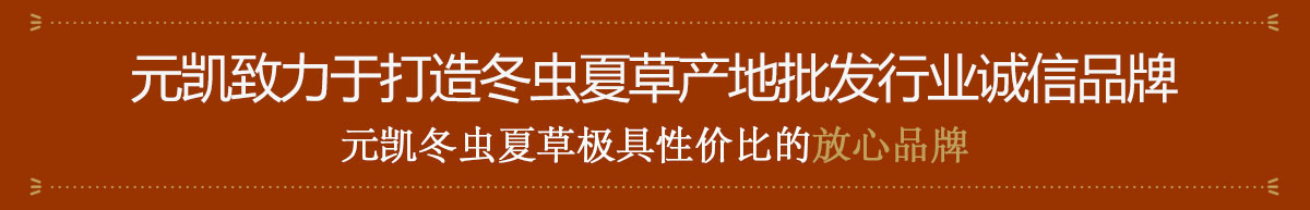 公司專業(yè)致力于青藏高原野生冬蟲夏草銷售、采收、精選包裝和現(xiàn)代化生產(chǎn)、研發(fā)等,并且在青海玉樹西藏那曲設(shè)立了采購站,專門采購地道的野生冬蟲夏草,充分保證了產(chǎn)品的品質(zhì)。元凱長期向國內(nèi)眾多著名藥材經(jīng)銷商、港澳臺以及東南亞中藥材采購商供應(yīng)冬蟲夏草,多次被省、市、縣授予多種榮譽稱號“青海省知名商標”、“青海省誠信單位”、“青海省名優(yōu)企業(yè)”、“守合同重信用企業(yè)”等。